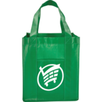 The Laminated Non-Woven Grocery Tote is soon to be your favorite grocery bag! It features a large open main compartment and a front slash pocket perfect for holding coupons or grocery lists. Durable 9 inch drop handles and easy to clean laminated material round out this great reusable bag.