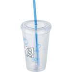 Double-wall acrylic tumbler and straw with stopper. Product ships with matching color straw unless specified otherwise in purchase order. BPA free. 16oz.
