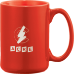 Cozy ceramic mug with two tone finish and a comfortable c-handle. Choose between color imprinting or our new cutting edge dishwasher safe laser decorating method. 14oz. “laser not available on white”