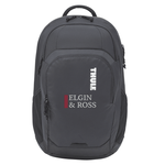 Thule Chronical 15" Computer Backpack. Stay organized on campus and beyond with the Thule Chronical 15” Computer Backpack. This backpack protects a 15” MacBook/15.6” PC in the padded laptop sleeve with SafeEdge construction and can store a 10.1” tablet in a separate protective sleeve. Protect your phone, sunglasses or other small valuables in the SafeZone pocket with rigid exterior and soft-lined foam-padded interior. Keep your notebook or files organized in the secondary compartment with a zippered privacy pocket. Stay organized with the easy to access organizational panel complete with a mesh pocket, pen storage and key leash and easily store your water bottle in one of the side mesh pockets. Carry this built to last backpack in comfort with the padded backpanel with airflow channels and easy-grab padded haul handle. Free run charges for embroidery up to 7500 stitches.