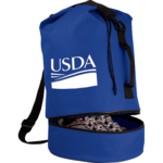 The Sailor Drawstring Duffel Sling has a roomy, open main compartment with drawstring rope and webbed clip closure. The bag also features a drop-bottom zippered compartment and an adjustable webbing sling carrying strap and single carry handle.