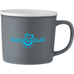 Cozy ceramic mug with smooth matte outer wall and white colored high-gloss liner. Microwave safe. Choose between color imprinting or our new cutting edge dishwasher safe laser decoration method "available on all colors except white". 12oz.