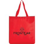 Perfect alternative to plastic bags. Open main compartment with snap closure. Laminated material is water-resistant and easily wipes clean. 10.5" drop handles.