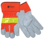 Hi-Viz Leather Gloves w/Safety Cuffs