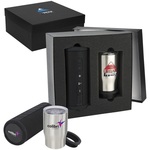 High quality black gift box features the Urban Peak® 3-in-1 Tumbler (SL238SS) and the 360 degree Bluetooth® Speaker (EL161)