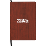 The Burton Refillable Notebook features a faux wood grain cover with color matching stitch detail. 64 sheets of cream lined paper. Refill size is 5.5" x 8.5". Black ribbon page marker.