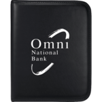 The Mezzo Tablet Padfolio has a zippered cover and features four adjustable hook and loop corner tabs for holding a 10” iPad® model or any other tablet device. Just lift and fold the fabric closure panel to use it as a built-in display stand. It includes an elastic pen loop and a refillable notepad with 30 ruled pages. A pen is not included.