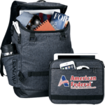 The elleven™ Modular 15" Computer Backpack is the next generation of professional bags built for ultimate versatility and organization that adapts to your lifestyle. Unique modular pouch detaches to provide the necessities you need, right when you need them. Store your tablet, headphones and power bank for your next flight. Then simply detach the pouch and stash your bag in the overhead compartment. Designated laptop compartment holds up to a 15.6" laptop. Top zippered pocket for quick-access items. Wipe able bottom for easy cleaning. RFID protected side pocket. Padded adjustable shoulder straps with sternum strap. Rear trolley sleeve. elleven™ branding elements and hardware. Free run charges for embroidery up to 7500 stitches. Disclaimer: There may be minor variations in color of the actual product due to the nature of the fabric dyes, weaves and printing.