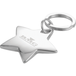 This Star-Shaped Key Ring features gloss nickel plated and a metal split key ring.