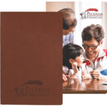 Elevate your brand with this full color, custom bound journal. Features a built in elastic closure, ribbon page marker, document pocket on back cover and 80 sheets of cream lined paper. Customizable full color graphic page insert and oversize blind deboss decoration included in pricing.