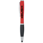 The Nash Gloss Finish Ballpoint Pen-Stylus with Light features a twist-action ballpoint pen with soft rubber stylus for touchscreen devices. Single white LED located at the end of the barrel. Use slide button to turn light on/off. Media device not included. Licensed under U.S. Pat. Nos. 8,847,930 and 9,092,077