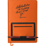 PU, hard bound journal. Color matching ribbon page marker. Front pocket to hold smartphone and business card slot. Elastic pen loop. 80 sheets of cream lined pages.