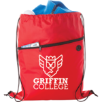 The Robin Drawstring Bag has a large main compartment with a zippered front pocket that includes an earbud port. This Kid Friendly sportspack also includes a convenient cinching rope closure.