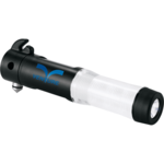 Illuminates up to 200m. Includes window hammer, safety belt cutter, and built-in magnet for attaching to vehicle. Lasts up to 36 hours when used as a flashlight (using one super bright LED) or up to 48 hours when used to flash red emergency signal (using 9 LEDs). Includes 2 AA batteries.