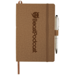 Set includes (2800-44) 5.5" x 8.5" Heathered Soft Bound JournalBook and (1065-08) Preston Dual Ballpoint Stylus. Heathered PU soft cover bound journal. Color matching elastic pen loop, elastic closure and ribbon page marker. Back document pocket. 80 sheets of cream lined paper.