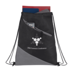 The Slanted Non-Woven Drawstring Bag features a front zippered pocket and cinch closure. With the accent left corner and zipper tape, this drawstring bag has a fun pop of color.