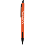 The Chatham Soft Touch Ballpoint Pen features a rubberized barrel with black accents. Retractable ballpoint with black ink cartridge.