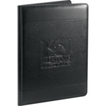 Documents pocket. Business card pockets. Elastic pen loop. Includes 8.5" x 11" writing pad. Pen not included.