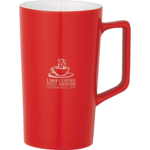 Large ceramic mug with wide integrated handle. Glossy attractive two-tone finish. (with exception of all white mug which is all white glossy finish). Microwave safe. Choose between color imprinting or our new cutting edge dishwasher safe laser decorating method "available on the BK and RD colors " . 20oz.