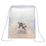 The Iridescent Drawstring Bag features a fun iridescent and clear PVC design. This bag include a cinch closure with quality webbing straps.
