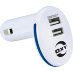 The Martin Dual Port Car Charger is an adapter that has dual ports and a LED ring that that illuminates while plugged into the accessory power outlet to charge personal devices. It's compatible with smartphones and personal devices that provide a USB cable for charging (including iPad® and tablet devices). Input: 12-24 Volts. Two USB Ports (5V/1 Amp & 2.1 Amp), Max Output: 2.1 Amp. A USB cable is not included. iPad is a trademark of Apple® Computer, Inc.